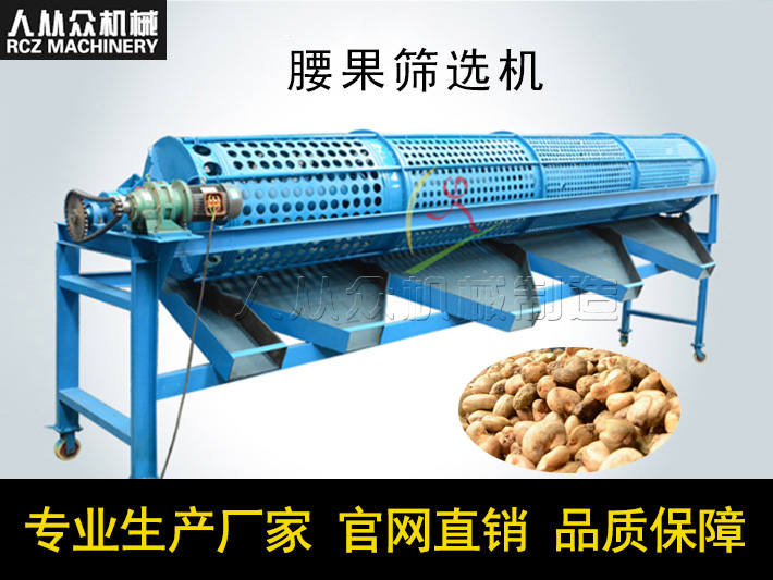 腰果篩分機(jī)/干果篩分機(jī)替代人工進(jìn)行大小的分揀,目前我司生產(chǎn)的腰果滾筒篩長(zhǎng)度可達(dá)12米,篩分量大、效果佳。