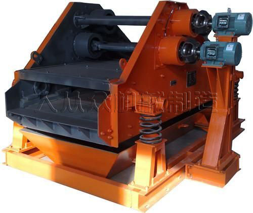 脫水篩是煤泥脫水篩作業(yè)的專(zhuān)用振動(dòng)篩,結(jié)構(gòu)上主要由篩箱、支承系統(tǒng)及振動(dòng)電機(jī)等組成。 脫水篩的的激振器有通用型偏心塊、可調(diào)振幅振動(dòng)器,通過(guò)雙電極自同步技術(shù),分別驅(qū)動(dòng)兩個(gè)互不聯(lián)系的振動(dòng)器作同步反向運(yùn)轉(zhuǎn),兩組偏心質(zhì)量產(chǎn)生的離心力沿振動(dòng)方向的分力疊加,反向離心力相互抵消,從而形成單一的沿振動(dòng)方向的激振動(dòng)力,使篩箱做作往復(fù)直線運(yùn)動(dòng)。