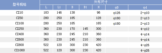 | 型號(hào) | CZ10等多個(gè)型號(hào),具體選型見(jiàn)詳情 |